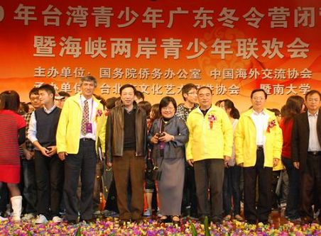 1月30日下午,由中國海外交流協(xié)會主辦,臺北市文化藝術(shù)促進協(xié)會、暨南大學承辦的“2010年臺灣青少年廣東冬令營”在暨南大學禮堂閉營。閉營儀式上,營員們表演了臺灣特色的文藝節(jié)目,載歌載舞,盡情聯(lián)歡。中國海外交流協(xié)會文教部部長劉輝,冬令營營長、臺北市文化藝術(shù)促進協(xié)會會長黃寤蘭,中國海外交流協(xié)會文教部副部長李民,暨南大學校領(lǐng)導胡軍、蔣述卓、賈益民、陸大祥、紀宗安、葉勤、周天鴻、林如鵬等出席閉營儀式。