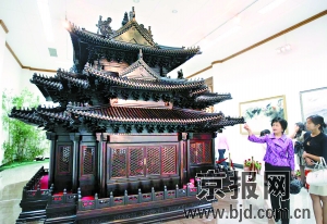 中國紫檀博物館展廳面積9569平方米。分別設有展品陳列廳、宣教廳、多功能會議廳、游客服務中心、紀念品商店、開放式影視廳等。陳列展廳根據(jù)其展陳內容又細分為正廳陳列、書房陳列、臥室陳列、婚房陳列、佛堂陳列等不同的廳堂格局;根據(jù)藏品材質的不同專設了紫檀家具展廳、黃花梨家具展廳、烏木家具展廳、金絲楠木家具展廳;館內展出的藏品總計近千件,其中包括十幾件明清時代的家具珍品;另外在這里還陳列了一系列可作為古代建筑摹本的微縮古建模型:故宮的角樓,紫禁城御花園中的千秋亭與萬春亭,山西五臺山龍泉寺牌坊,山西萬榮縣的飛云樓,古色古香的北京四合院,這些都是用紫檀按照傳統(tǒng)榫卯結構手工制作而成的;為了讓游人更好地了解中國傳統(tǒng)家具的制作精髓,還特別陳設了傳統(tǒng)家具原木、造型、結構展示以及雕刻工藝的展示。尤其值得一提的是紫檀雕“清明上河圖”大插屏群雕,以紫檀為錦、以雕代筆、以刀作畫,再現(xiàn)了中國古代最著名的絹本畫原貌,可謂是歷代古畫臨摹史上一次偉大的創(chuàng)舉,被世界譽為“東方藝術瑰寶”。