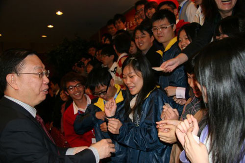 他表示,青年學(xué)生是社會的未來,希望兩岸學(xué)生從民族尊嚴(yán)和振興中華的角度,實踐和推動兩岸的和平發(fā)展,同時鼓勵臺灣醫(yī)學(xué)生到基層實習(xí)、鍛煉,培養(yǎng)良好的職業(yè)道德。會見結(jié)束后,黃潔夫與臺灣醫(yī)學(xué)生們合影留念。