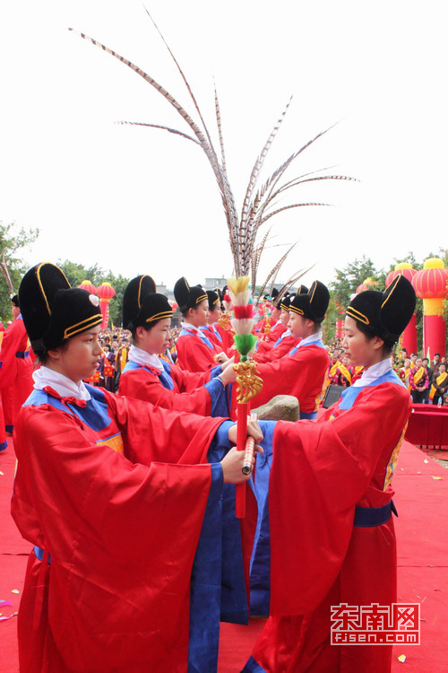 在現(xiàn)場(chǎng),不僅僅有太平鼓、惠安禮鼓等民間文化展示,40多位年輕女子還集體跳起了"六佾舞",成為一大亮點(diǎn)。她們左手執(zhí)龠、右手秉翎,在優(yōu)雅古樂中翩翩起舞。"王審知為了百姓而不做閉門天子,中原王朝給他的封號(hào)是王爵,因此祭祀時(shí)跳的是'六佾舞'而不是天子的'八佾舞'。"祭祀策劃人員鄭煒說(shuō),"這些祭祀細(xì)節(jié),都是為了遵循王審知的愛民思想。"