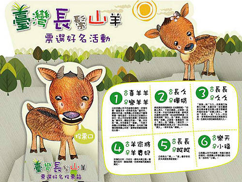 據(jù)介紹,臺北市立動物園會從6月1日起,在梅花鹿與長鬃山羊展場前,設(shè)1個月的“最后命名票選活動”,動物園也為游客準備精美投票折頁,除了投下神圣一票,只要動動手,就可以將折頁上的可愛梅花鹿與長鬃山羊,變成立體卡片帶回家收藏。