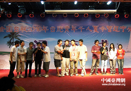中國臺灣網(wǎng)7月22日沈陽消息 日前,以“龍脈相傳,青春中華”為主題的“全國臺聯(lián)2010年臺胞青年千人夏令營”遼寧分營結(jié)束本次遼寧之行,并在沈陽舉行了盛大的閉營儀式。遼寧省有關(guān)部門領(lǐng)導(dǎo)王艷文,全國臺聯(lián)副會長、遼寧臺聯(lián)會長王松先后致辭。