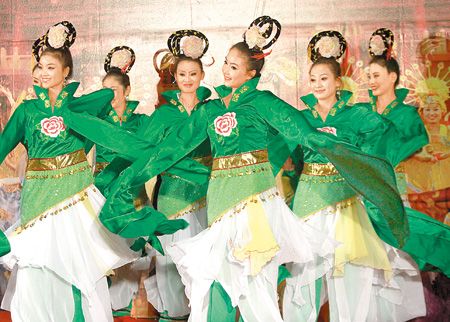 臺灣陜西周14日起在臺登場。圖為裝扮成古代宮女的陜西姑娘在“陜西風情節(jié)”中翩翩起舞!碓矗号_灣《中國時報》