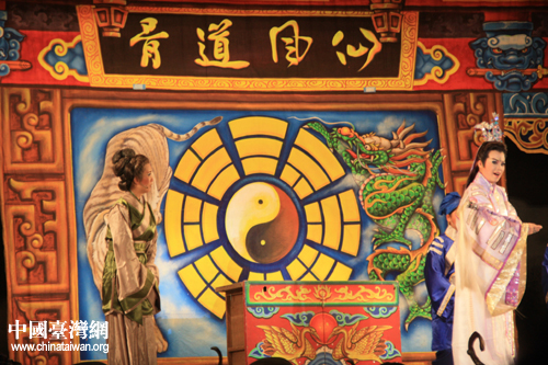 臺(tái)灣明華園黃字劇團(tuán)與漳州市薌劇團(tuán)同臺(tái)獻(xiàn)演大型歌仔戲《周公法斗桃花女》。(中國(guó)臺(tái)灣網(wǎng) 胡珊珊 攝影)