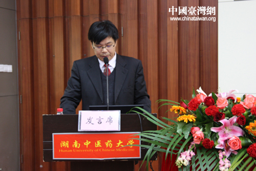 湖南中醫(yī)藥大學國際教育學院院長、港澳臺辦公室主任彭清華教授介紹對臺教育與交流情況(中國臺灣網 楊永青 攝)