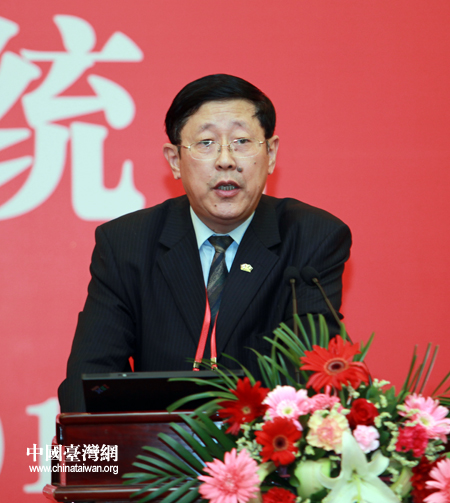 南京大學(xué)臺研所所長崔之清代表自己所在小組向大會作報告。(中國臺灣網(wǎng) 鐘寶華 攝)