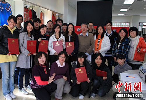 臺(tái)灣海洋大學(xué)新成立的國(guó)際事務(wù)處近日專為“大陸交換生”舉辦新年座談及歡送會(huì)。22位“大陸交換生”分別來自中國(guó)海洋大學(xué)、上海海洋大學(xué)、浙江海洋大學(xué),在臺(tái)灣海洋大學(xué)交換學(xué)習(xí)一學(xué)期或一學(xué)年,他們是在該校學(xué)習(xí)的第二批大陸交換生。國(guó)際事務(wù)處沈士新博士、處長(zhǎng),當(dāng)天為13位如期完成了學(xué)習(xí)的交換生頒發(fā)學(xué)習(xí)證書。中新社記者 關(guān)向東 攝