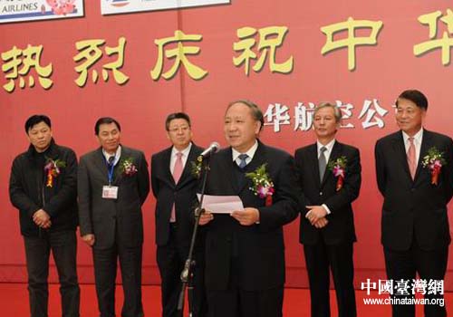 臺灣華航集團總經(jīng)理孫洪祥特地搭乘首航班機抵達武漢,參加在武漢天河機場舉辦的首航儀式。湖北省政協(xié)副主席陳春林、湖北省臺辦主任劉凱春及其他相關部門的負責人出席了首航儀式。