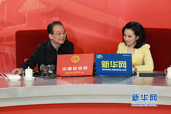 2月27日上午,中共中央政治局常委、國務(wù)院總理溫家寶接受中國政府網(wǎng)、新華網(wǎng)聯(lián)合專訪,與廣大網(wǎng)友在線交流。 新華社記者 龐興雷攝