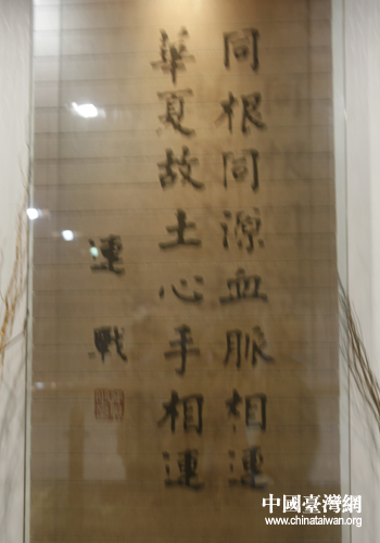 國民黨主席連戰(zhàn)參觀根親文化博物館時的題詞(中國臺灣網(wǎng) 吳捷 攝)
