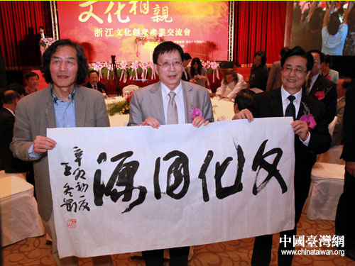 中國臺灣網(wǎng)5月27日臺北消息 26日下午,“2011·文化相親”文化創(chuàng)意產(chǎn)業(yè)交流會在在臺北圓山飯店舉行。中共浙江省委書記趙洪祝、臺灣中華文化總會會長劉兆玄、臺北世界貿(mào)易中心董事長王志剛出席活動。