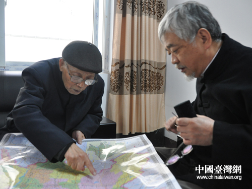 丁原植教授與尚景熙先生探討楚國(guó)疆界(圖片來(lái)源:駐馬店臺(tái)辦)