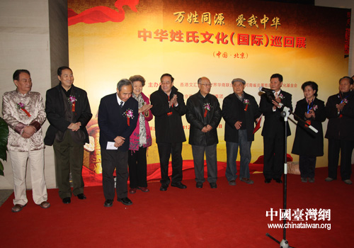 中國臺灣網(wǎng)12月6日北京消息 今天上午,北京中華世紀(jì)壇內(nèi)人頭簇動、暖意融融,中華姓氏文化(國際)巡回展在這里隆重開幕,吸引了海內(nèi)外眾多宗親組織負(fù)責(zé)人和姓氏研究專家紛紛來京,也引起了各級領(lǐng)導(dǎo)、學(xué)者及廣大普通老百姓的極大關(guān)注,開幕式當(dāng)天就有上千人參觀。