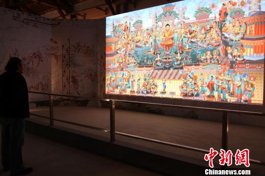 圖為大屏幕在播放《阿彌陀凈土經(jīng)變圖》。董會(huì)峰攝