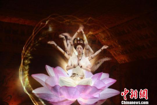 圖為3D劇場(chǎng)滾動(dòng)播放由臺(tái)灣女演員演繹的千手觀音。董會(huì)峰攝
