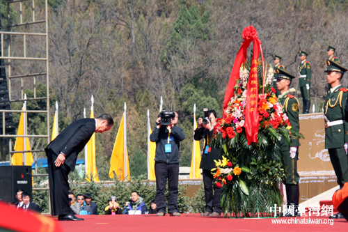 4日上午,海內(nèi)外一萬(wàn)多名中華兒女代表在陜西黃陵滿(mǎn)懷虔誠(chéng)的參加了公祭典禮,追念人文初祖功德,表達(dá)炎黃子孫追思,新黨主席郁慕明參加公祭并向始祖敬獻(xiàn)了花籃。