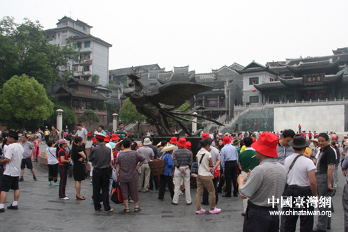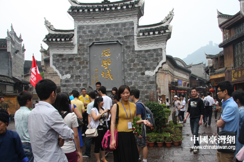 中國臺灣網(wǎng)5月19日鳳凰消息 今天上午,第九屆海峽兩岸媒體來湘聯(lián)合采訪團一行,走訪了湘西州鳳凰縣,參觀了鳳凰古城、沈從文故居、楊家祠堂、熊稀齡故居,并且沱江泛舟,近距離感受鳳凰古城魅力。(記者 張曉靜)