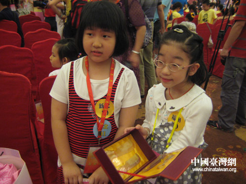 來自福州和新北的小朋友進(jìn)行結(jié)對儀式,并交換精心準(zhǔn)備好的禮物。(中國臺灣網(wǎng) 李丹 攝)