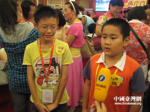 來自福州和高雄的小朋友接受媒體采訪(中國臺灣網(wǎng) 李丹 攝)