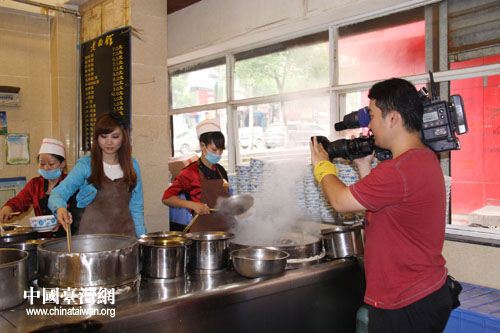 中國(guó)臺(tái)灣網(wǎng)7月16日貴陽消息 貴陽是一個(gè)包容性很強(qiáng)的城市,各類美食也匯聚于此。民以食為天,來筑拍攝的臺(tái)灣東森電視臺(tái)《生活接力棒》欄目組首選貴陽名小吃中的腸旺面和絲娃娃,以主持人親手掌勺,親口品嘗的方式,創(chuàng)造觀眾視覺饗宴,引導(dǎo)觀眾前來旅游、體驗(yàn),從而達(dá)到“生活接力棒,看誰來接棒”的接力效應(yīng)。