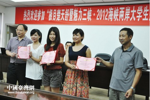 黃應平向臺灣師生介紹了三峽大學的現有規(guī)模、院系設置等情況,并回顧了近些年來三峽大學與臺灣高校開展教學交流情況。開營儀式上,還為“2011·紀念辛亥革命一百周年海峽兩岸大學生征文”活動10名獲獎者頒發(fā)了獎品;兩岸的師生還互贈了禮品,開營儀式簡短、熱烈。