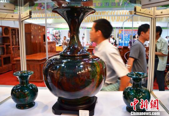 由新疆旅游局和克拉瑪依市人民政府主辦的首屆旅游商品博覽會(huì)10日在此間拉開(kāi)序幕,將持續(xù)到15日結(jié)束,來(lái)自新疆15個(gè)地州市以及山東、上海、福建、廣東等十余個(gè)省市的400余家展商參加。主辦方稱,是次博覽會(huì)是迄今為止疆內(nèi)參展商最多、規(guī)模最大、特色最突出的旅游商品會(huì)。來(lái)自臺(tái)灣、主營(yíng)七彩玉的沛納金珠寶有限公司也帶來(lái)七彩玉瓶等器皿參展。