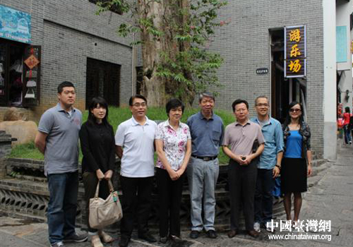張孝威一行在岳陽風(fēng)景區(qū)千年古樹下合影留念。(圖片來源:岳陽市臺辦)