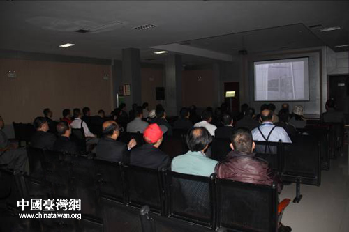 觀看大戰(zhàn)影像資料。(圖片來源:棗莊市臺辦)