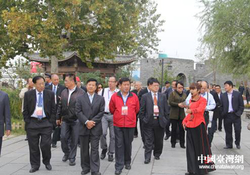 中國(guó)臺(tái)灣網(wǎng)10月25日棗莊消息 日前,2012全國(guó)臺(tái)灣同胞投資企業(yè)協(xié)會(huì)會(huì)長(zhǎng)座談會(huì)參會(huì)嘉賓游覽了棗莊海峽兩岸交流基地——臺(tái)兒莊古城。