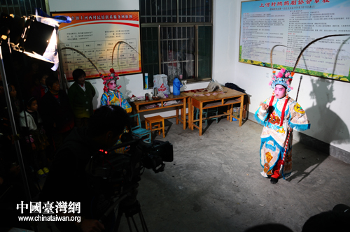 臺(tái)灣媒體攝制組拍攝鷓鴣戲。(圖片來(lái)源:淄博臺(tái)辦)
