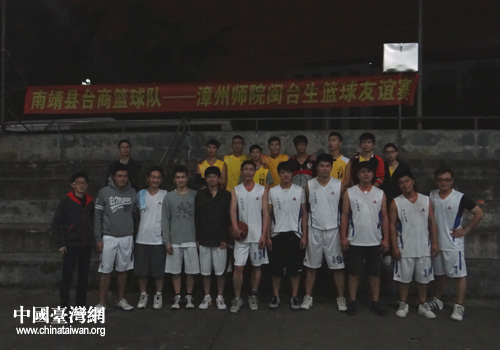 中國(guó)臺(tái)灣網(wǎng)12月11日漳州消息 日前,漳州市南靖縣臺(tái)商籃球隊(duì)與漳州師范學(xué)院閩臺(tái)生籃球友誼賽在漳州師院燈光籃球場(chǎng)舉行。雙方實(shí)力相當(dāng),比分一直處于膠著狀態(tài)。經(jīng)過(guò)四節(jié)比賽,最終閩臺(tái)生籃球隊(duì)以51比48贏得了友誼賽的勝利。賽后,兩隊(duì)球員友好握手,并在球場(chǎng)上合影留念。