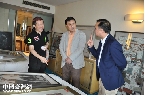 上海市臺(tái)協(xié)會(huì)秘書(shū)長(zhǎng)王躍(中)參觀臺(tái)灣畫(huà)廊藝術(shù)品。(上海臺(tái)協(xié) 玉龍 攝)