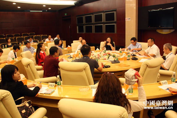 兩岸媒體記者與湖南廣播電視臺(tái)有關(guān)負(fù)責(zé)人進(jìn)行交流座談。(中國(guó)臺(tái)灣網(wǎng) 高斯斯 攝)
