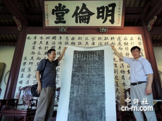 人民網(wǎng)9月16日電 據(jù)中評(píng)社報(bào)道,兩岸首次舉辦“清代臺(tái)灣進(jìn)士專題展”即將于18日在臺(tái)南揭幕,來自北京孔廟和國子監(jiān)博物館復(fù)制碑帖16日在臺(tái)南孔廟明倫堂率先亮相,見證中國科舉制度在臺(tái)灣的歷史。