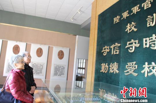 臺(tái)灣著名畫(huà)家周榮源與夫人共閱保定軍校校訓(xùn)!±罘既A 攝
