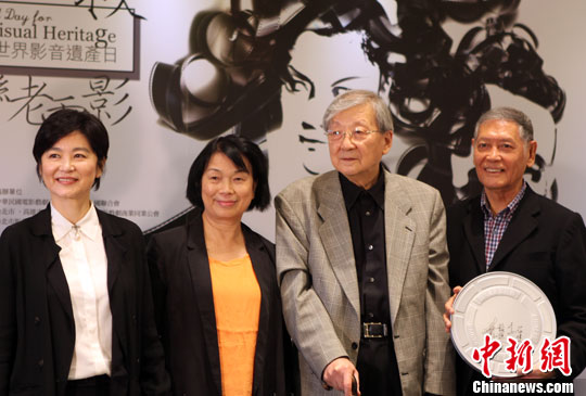 10月24日,臺灣“文化部”舉行“世界影音遺產(chǎn)日——大家一起來搶救臺灣老電影”記者會。臺灣“文化部”部長龍應(yīng)臺(左二)邀請臺灣知名影星林青霞(左一)、石雋(右一)、導(dǎo)演李行(左三)為搶救老電影“守護(hù)大使”。中新社發(fā) 陳立宇 攝