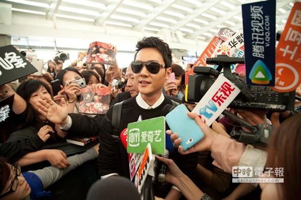 馮紹峰今(29)日下午抵臺,吸引大量粉絲接機擠爆大廳。(圖片來自臺媒)