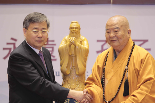 郭樹清說,山東是孔子故鄉(xiāng),孔孟文化代代相傳,在社會(huì)文化中發(fā)揮重要作用。此次來到臺(tái)灣,為佛陀紀(jì)念館帶來了孔子雕像,希望兩岸人民能找到中華文化的共鳴。星云法師表示,自己對(duì)于孔子的信仰和佛教一樣虔誠(chéng),也希望孔子在佛陀紀(jì)念館中有其地位。兩岸人民從歷史、文化上都有著高度的一致,兩岸文化交流必能和諧發(fā)展。