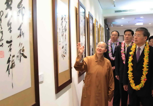 郭樹清一行參觀佛陀紀(jì)念館。人民網(wǎng)記者 任成琦 攝