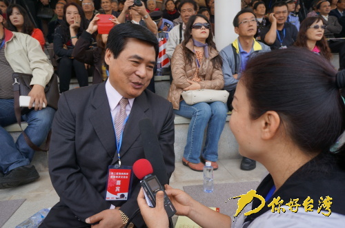 圖三:記者采訪海峽兩岸中小企業(yè)聯(lián)合促進會總會副秘書長劉冠雄。