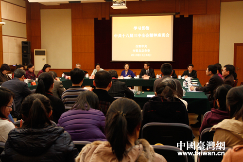 臺盟中央、臺盟北京市委11月18日在京舉行學(xué)習(xí)貫徹中共十八屆三中全會精神座談會。(中國臺灣網(wǎng) 王怡然 攝)