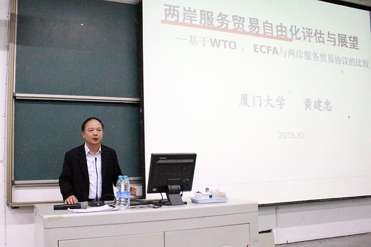 11月13日下午,廈門大學(xué)經(jīng)濟(jì)學(xué)院教授、博士生導(dǎo)師黃建忠,應(yīng)邀來院開展題為“兩岸服務(wù)貿(mào)易自由化的評(píng)估與展望——兼談閩臺(tái)服務(wù)貿(mào)易合作”的專題講座。