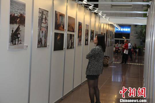 圖為一名女性在觀賞攝影展!《瓡(huì)峰 攝