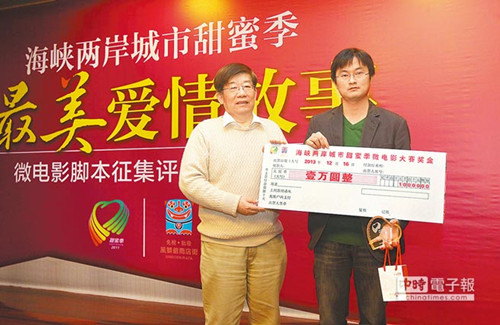 據(jù)臺灣《旺報》報道,第三屆兩岸城市甜蜜季愛情微電影故事評選結(jié)果揭曉,16日在廈門日報社舉行頒獎儀式。