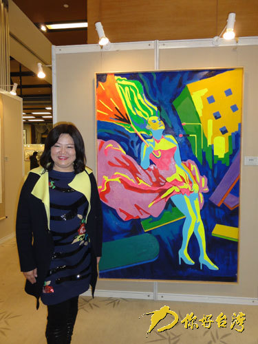 臺灣油畫家吳和珍與她的作品。(你好臺灣網(wǎng) 圖)