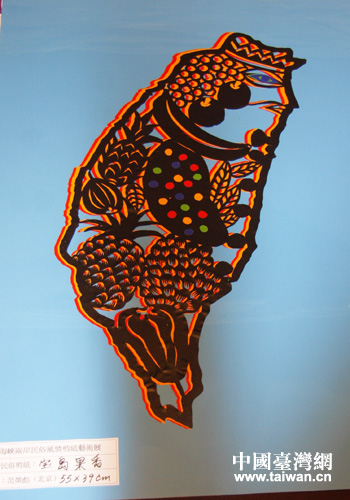 臺灣民俗風(fēng)情剪紙作品《寶島果香》。(中國臺灣網(wǎng) 郭慶娜 攝)