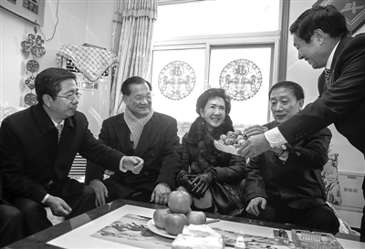 昨日,中國國民黨榮譽主席連戰(zhàn)攜夫人在平谷區(qū)掛甲峪村一戶農(nóng)家做客。張浩 攝