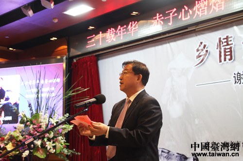 北京市臺聯(lián)黨組書記王蘭棟對展覽開幕表示歡迎并致辭。(中國臺灣網(wǎng) 楊永青 攝)