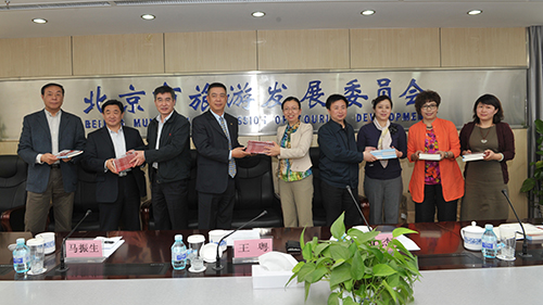 2014年4月1日,來(lái)自北京市接待臺(tái)灣游客的旅行社負(fù)責(zé)人、導(dǎo)游聚集一堂,參加《寶島游客逛北京》發(fā)書儀式。北京市旅游發(fā)展委員會(huì)副主任王粵、北京市人民政府臺(tái)灣事務(wù)辦公室副巡視員馬振生、北京市人民政府新聞辦公室副主任白杰出席。市旅游委、市臺(tái)辦有關(guān)部門領(lǐng)導(dǎo)、工作人員,國(guó)旅總社、中國(guó)旅行社總社(北京)有限公司、中青旅、春秋旅行社、康輝旅行社、凱撒國(guó)旅、新華國(guó)際旅行社、眾信旅行社、海峽旅行社、北京中國(guó)國(guó)際旅行社、中信旅游、神舟國(guó)際旅行社、環(huán)境國(guó)際旅行社等旅行社負(fù)責(zé)人、導(dǎo)游約40人參加了發(fā)書儀式。