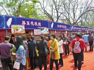 臺(tái)味小吃,2014大陸山東泰山東岳廟會(huì)及海峽兩岸民俗文化周昨天啟動(dòng),現(xiàn)場(chǎng)一股濃濃臺(tái)灣味。(胡明揚(yáng) 攝影)(臺(tái)灣《聯(lián)合報(bào)》)